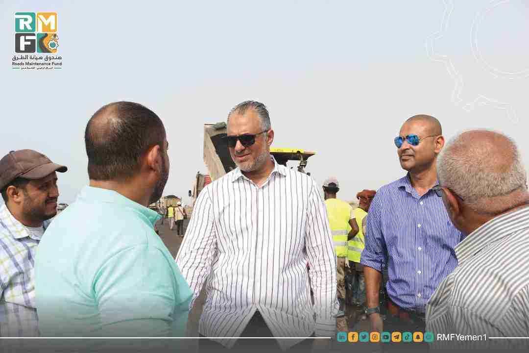 تفقد المهندس معين محمد الماس رئيس مجلس إدارة صندوق صيانة الطرق والجسور المركز الرئيسي-العاصمة عدن على سير الاعمال الجارية في المشروع و ما تم إنجازه من أعمال السلفتة الواسعة للطريق.