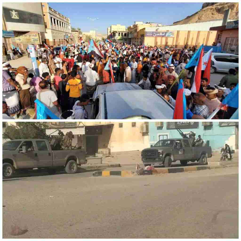 وكانت المراكز المحلية للمجلس الانتقالي الجنوبي بمدينة سيئون وشباب الغضب بوادي حضرموت قد أصدرت دعوات للتظاهر بمدينة سيئون عصر اليوم الجمعة تنطلق من أمام جولة الشهيد بن حبريش مروراً بالشارع العام ووصولاً إلى ساحة القصر بسوق سيئون العام.