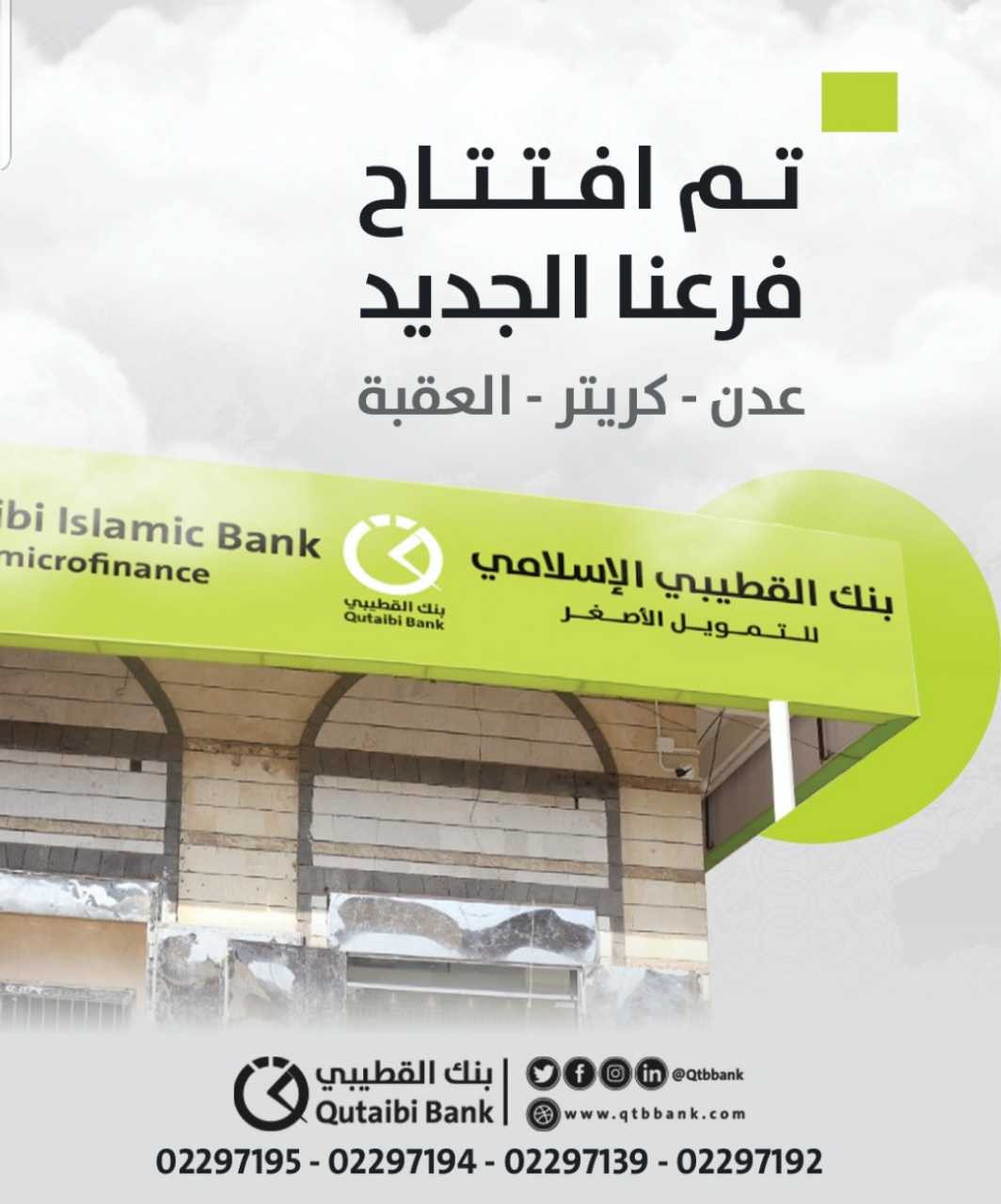 بنك القطيبي الإسلامي يفتتح فرعه الجديد في عقبة كريتر بعدن