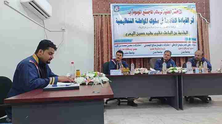 حصل الباحث نقيب مفيد حسين اليهري مدير اصلاحية عدن المركزية على الماجستير بامتياز من كلية العلوم التطبيقية بجامعة عدن عن رسالته الموسومة بـ” أثر القيادة الخادمة في سلوك المواطنة التنظيمية” دراسة حالة مؤسسة إصلاحية عدن المركزية.