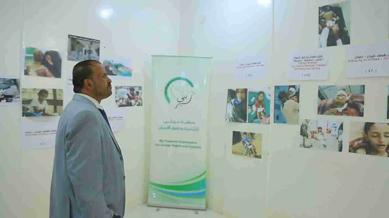حيث تضمن المعرض الذي اقيم في محافظة مأرب تحت شعار" نساء واطفال اقليم تهامة تحت نيران الحرب" اكثر من مائة صورة موزعة على انتهاكات القتل والقنص، الاختطاف والاخفاء القسري، التعذيب بشتى الانواع، ضحايا حقول الالغام، الاجهاض للنساء الحوامل، التحرش والاغتصاب، تجنيد الأطفال.