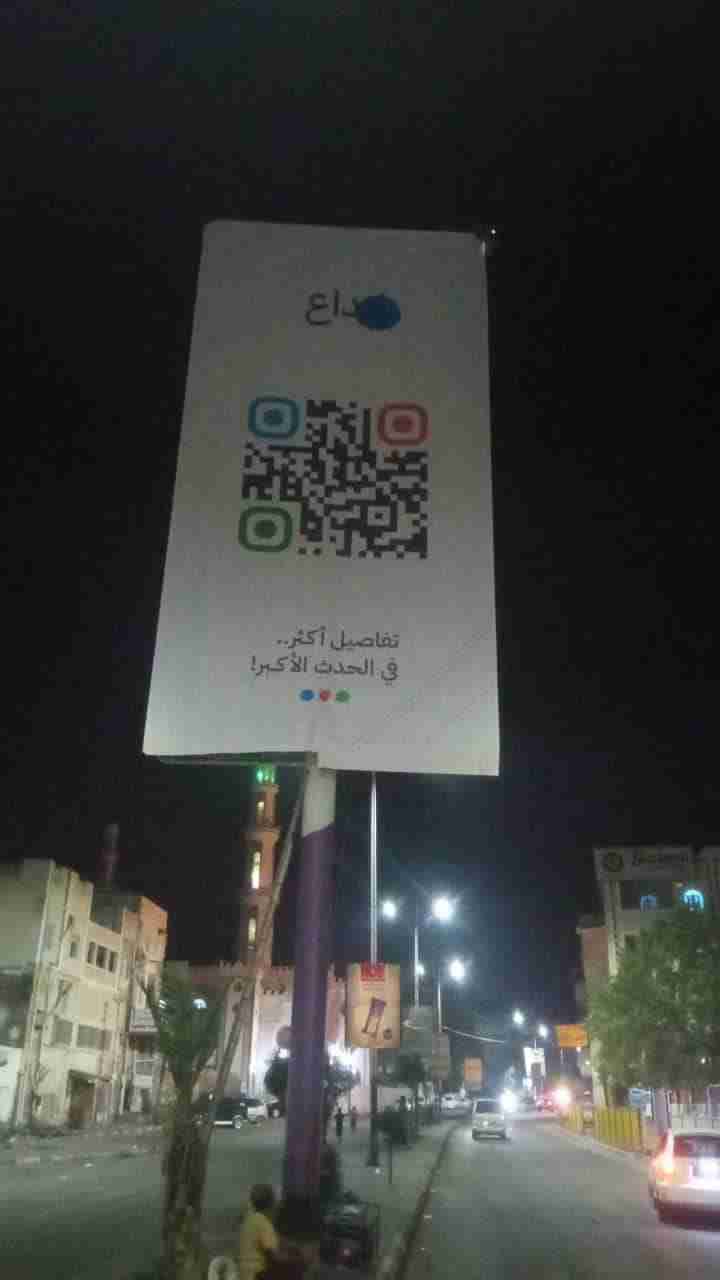 رفع عدد من اللوحات تحمل رمز QR تشير إلى حدث هام في عدن