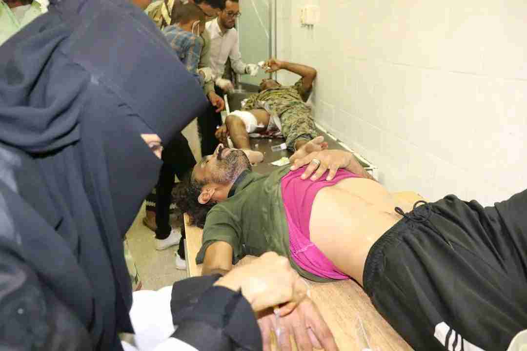 وافادت مصادر طبية في مستشفى إبن خلدون عن وصول سبعة جنود الى طوارئ المستشفى أغلبهم اصابتهم حرجة فيما تم تحويل بعض الحالات إلى مستشفيات العاصمة عدن.