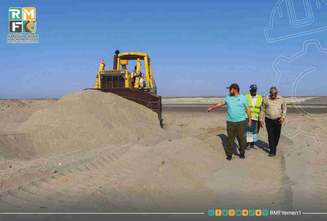 حيث تستمر الفرق الفنية هناك بأعمال إزاحة الرمال من الخط الدولي الشرياني الرابط بين العاصمة عدن وبقية المحافظات المحررة إضافة إلى المملكة العربية السعودية وسلطنة عمان تفاديا لوقوع الحوادث المرورية على الخط الشرياني بسبب زحف الرمال على الخط.