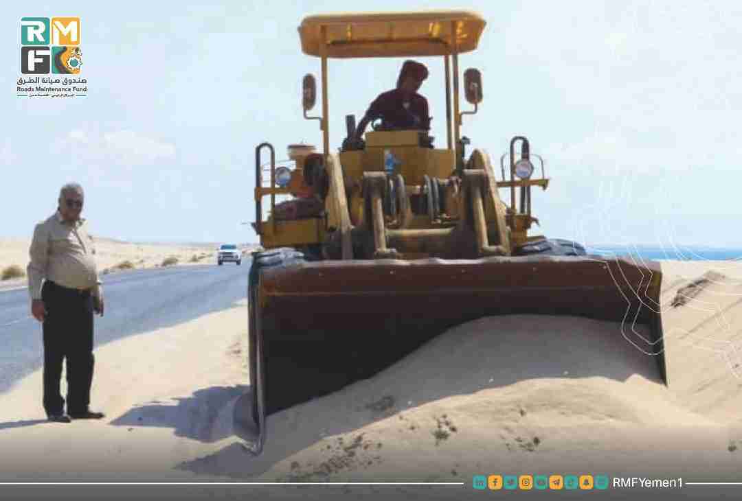 وبدأت الفرق الفنية عمليات إزاحة الرمال عن الطريق الرباط بين الساحل الغربي والعاصمة عدن بتمويل واشراف صندوق صيانة الطرق والجسور المركز الرئيسي عدن بما يضمن تفادي وقوع الحوادث المرورية على هذا الطريق الشرياني الهام.
