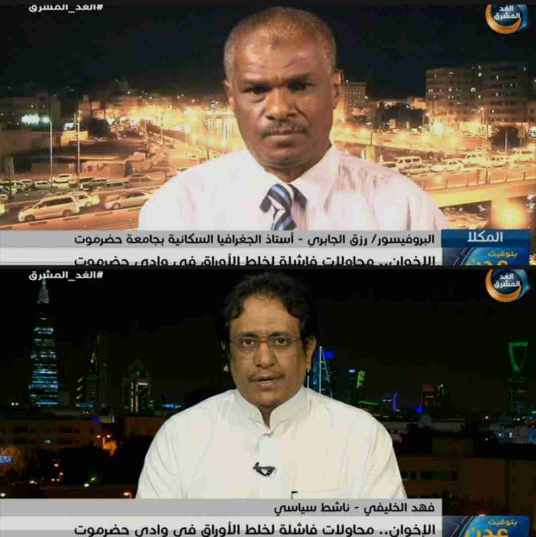 قال أستاذ الجغرافيا السكانية بجامعة حضرموت، البروفيسور رزق الجابري إن جماعة الإخوان تحاول وتعمل بمختلف الوسائل والأدوات على إرباك المشهد السياسي بحضرموت وتعطيل اتفاق الرياض”.