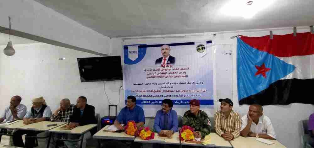 برعاية الرئيس القائد عيدروس قاسم الزبيدي رئيس المجلس الانتقالي الجنوبي نائب رئيس مجلس القيادة الرئاسي عقد صباح اليوم الأربعاء بمحافظة الضالع اللقاء التشاوري لإعلاميي وصحفيي المحافظة تحت شعار (من أجل إعلام جنوبي حر يساهم في تحقيق أهداف شعب الجنوب).