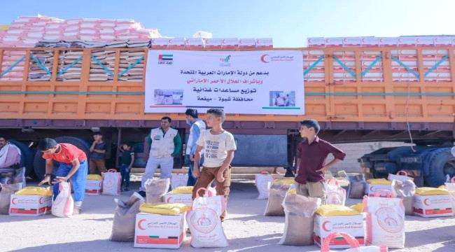 وزعت هيئة الهلال الأحمر الإماراتي امس الأربعاء 85 طن من المواد الغذائية المتنوعة على المواطنين الفقراء وذوي الدخل المحدود في مديرية ميفعة بمحافظة شبوة .
