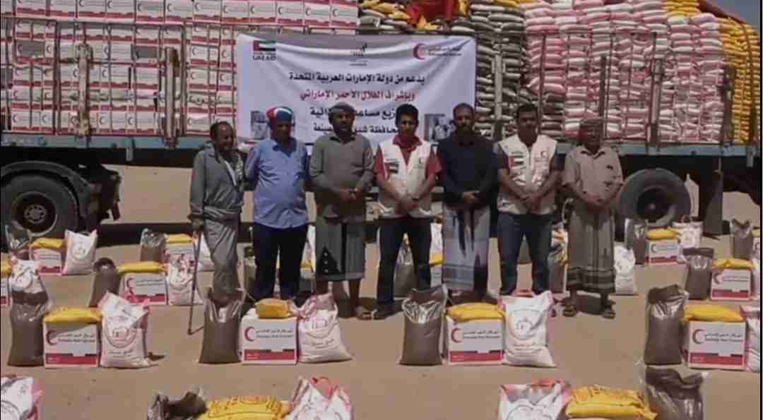 وزعت هيئة الهلال الأحمر الإماراتي مساعدات غذائية للأهالي في المصينعة بمديرية الصعيد بمحافظة شبوة ضمن جهودها الإنسانية الواسعة التي تنفذها لإعانة المواطنين وتحسين ظروفهم المعيشية.