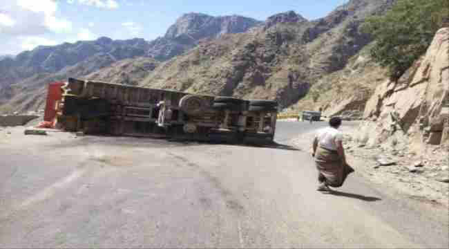 انقلاب شاحنة يتسبب بإغلاق الخط الرابط بين البيضاء ويافع