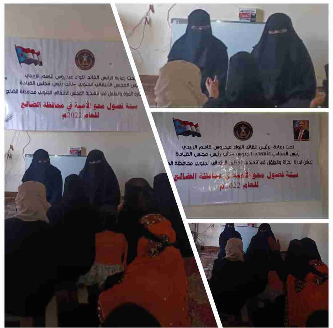 يذكر أن إدارة المرأة والطفل بانتقالي محافظة الضالع قد بدأت قبل أيام تدشين وافتتاح فصول محو الأمية ضمن الأنشطة الدورية للإدارة حيث يبلغ عدد الفصول بالمحافظة ستة فصول ووزعت على مختلف المديريات وبمعدل فصل واحد في كل مديرية وفصلين في مديرية الضالع.