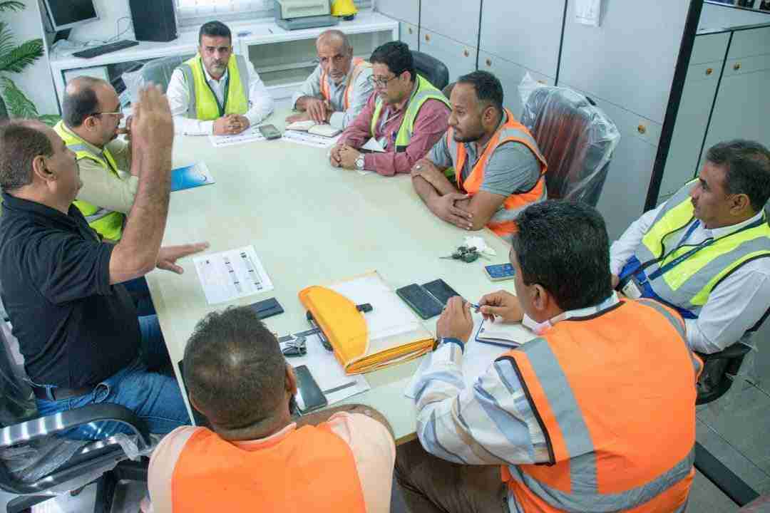 وفي السياق نفسه عقد لقاء موسع جمع بين مدراء الإدارات والأقسام المعنية في تنفيذ المشروع وبين مدير الشركة المنفذة ، بحث من خلاله حيثيات ومتطلبات تنفيذ المرحلة بما فيها جدول البواخر الزائرة للمحطة ، ومن المتوقع أن تبدأ أعمال التجهيزات والتحضيرات للمصدات يوم غداً إستعدادا لتركيبها.