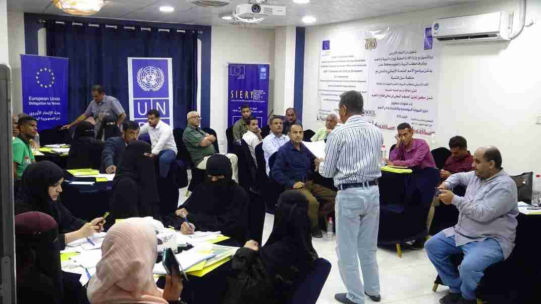 دشن صباح اليوم الأحد، في محافظة عدن، لقاء تنسيقي لمكاتب التربية والتعليم والجهات ذات العلاقة في محافظة عدن، ضمن مكون تعزيز الحكم المحلي في تعافي قطاع التعليم في إطار مشروع تعزيز المرونة المؤسسية والاقتصادية في اليمن الذي ينفذه برنامج الأمم المتحدة الإنمائي بتمويل من الاتحاد الأوروبي بالتعاون مع منظمة سول للتنمية وبالتنسيق مع وزارتي الإدارة المحلية والتربية والتعليم.