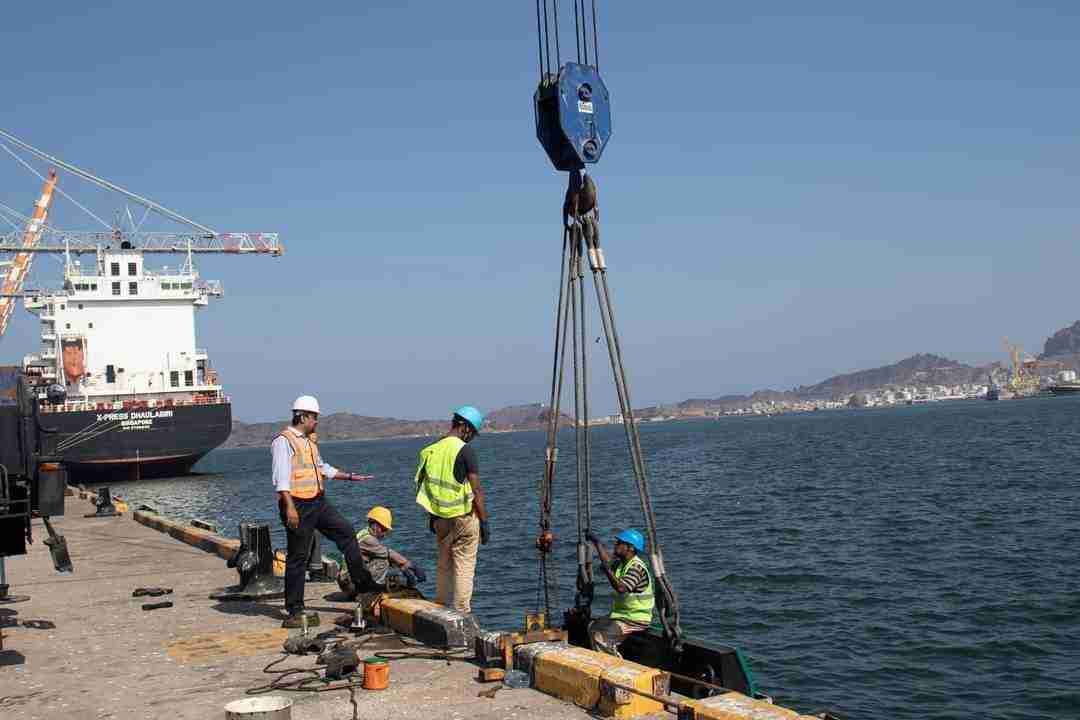 أستأنف فريق إستبدال وتركيب المصدات البحرية عملة بمحطة ميناء عدن للحاويات عقب توقيع اتفاق المرحلة الثانية .
