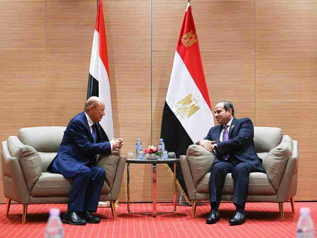 رئيس مجلس القيادة الرئاسي يبحث والرئيس المصري المستجدات اليمنية والعلاقات الثنائية